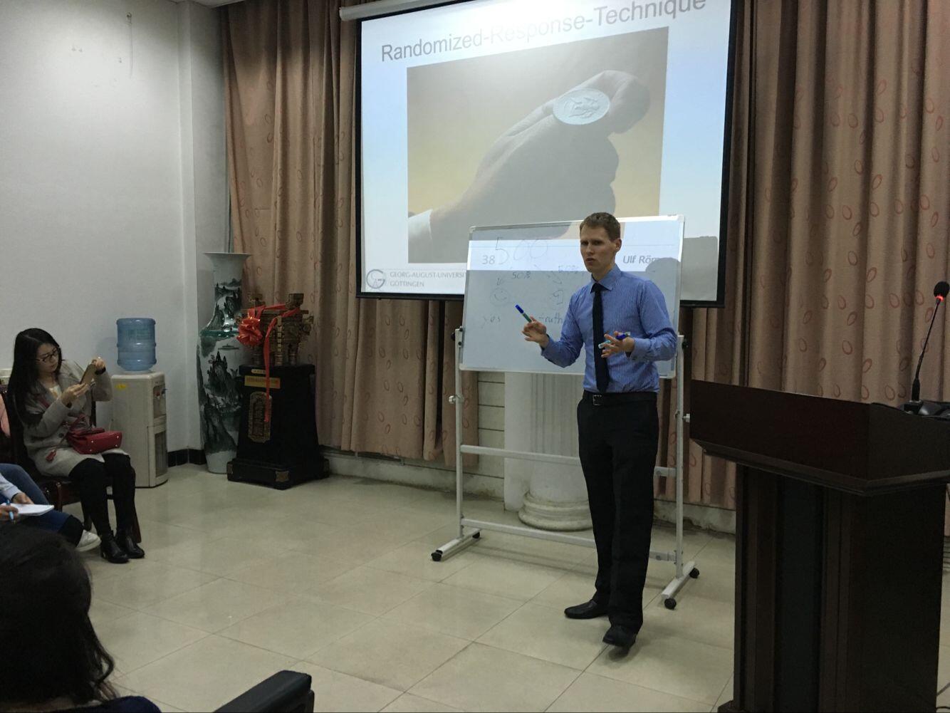 27日,Turvey教授和Ulf博士应邀在601会议室为伟德官网部分青年教师和博硕士研究生分别作了“Insuring Agricultural Loans with Risk-Contingent Credit”和“How does asymmetric information in individual microfinance”的学术报告,回答了师生的相关提问,并就相关研究领域的热点问题与伟德官网师生进行交流探讨。两位专家开放的授课风格,前瞻的研究视角,新颖的计量方法,使与会师生深受启发。