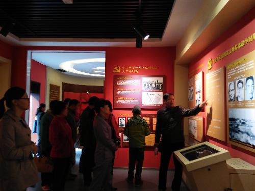 八路军西安办事处纪念馆是1936年初中共中央在西安设立的秘密交通站, “西安事变”后转为半公开至公开的“红军联络站”,主要开展统一战线、输送进步青年去延安、为陕甘宁边区和前方转送战争物资等工作。大家怀着崇敬的心情参观了周恩来、朱德、刘少奇等革命伟人生活和工作过的地方,一件件珍贵的革命文物,一张张感人的历史图片,一个个震撼人心的历史故事,迅即拨响了我们的心弦,眼睛不够用了、笔头子记不下了,情感滑落,再也挪不动步子了。大家时而驻足在某个历史实物前讨论它在抗战时期是如何工作,时而停留在一张历史图片前追忆当时的历史背景,时而驻足在某段革命事件简介前仔细阅读,时而停留在某位革命先烈的英雄事迹前默默学习。当看到开展大生产运动开荒种菜、纺线织布的劳动工具,大家不禁同唱起了南泥湾……唤起了党员们对那一段历史的追溯,那是一个共产党、八路军深得民心的年代,在恶劣环境下共产党人将革命智慧和斗争艺术发挥的淋漓尽致!这是一座通往理想的“红色桥梁”,天下贤才走向延安,奔赴抗日前线,为了革命坚守信念、不怕牺牲、艰苦奋斗,在党旗下重温入党誓词吧,让我们接受这终身难忘的精神洗礼!