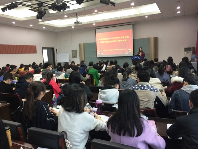 为贯彻《党章》要求,落实《中国共产党发展党员工作细则》规定,11月6日,学院党委对2016年下半年76名党员发展对象、65名拟转正预备党员进行了集中培训。特邀校纪委副书记孙升辉、校党委宣传部部长闫祖书、马克思主义学院副院长邓谨、原党校常务副校长李芳林四位同志分别做“党员《准则》、《条例》与《问责条例》”、“学校第三次党代会精神”、“习近平总书记‘七一’重要讲话”、“十八届六中全会精神”专题讲解。