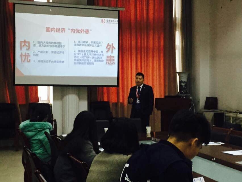 为帮助学生准确把保险行业发展形势,明确就业发展方向,为毕业生求职奠定坚实基础。11月18日,富德生命人寿陕西分公司人力资源部总经理王锐应邀担任主讲人为同学们上了一堂生动的保险课,2017届部分毕业生在经管学院603参加了此次报告会。