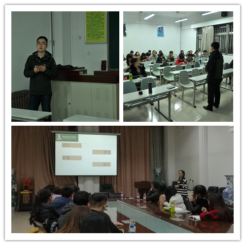 本次访学经验交流会展示了伟德官网学生访学的学习工作状态,让同学们了解了申请美国MSU访学的基本流程,极大地吸引了同学们的热情和兴趣,通过积极的互动交流,使同学们对出国访学有了更细致、更深刻的了解。