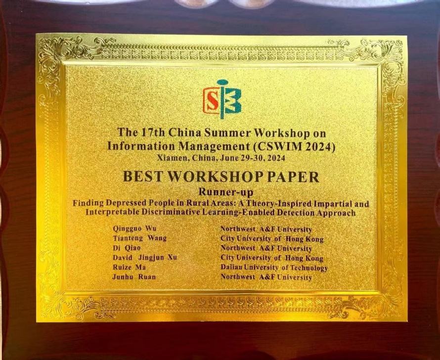 3.论文专利、标准、专著发表:2024年,中心成员持续产出高质量的学术成果,多篇论文发表于《管理世界》、《中国农村观察》、《中国管理科学》、《运筹与管理》、《系统管理学报》、European Journal of Operational Research、IEEE Transactions on Fuzzy Systems、Technological Forecasting & Social Change等国内外高水平期刊;此外,获得“第17届CSWIM”国际会议“最佳研讨会论文”奖项、“第18届ICICIC”国际会议论文发表证明、成功申请“一种基于自适应集成学习的羊只行为识别方法及系统”、“鸡蛋孵化率预测模型构建、孵化率特征评估及预测方法”2项专利、完成“肉牛育种全域数字化监测标准综合体”企业标准设计1项、参与编著《2024中国旱区农业技术发展报告》、《上合组织成员国农业技术集成示范与标准化研究报告》2项。