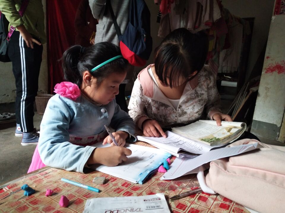 早上7点50,两院共14位同学在西区雕塑集合完毕,全体同学向寨东村出发。在村委会门口,孩子们见到志愿者们都非常亲切的迎上来问候,丝毫没有生疏感。拍照留念后,按照预定好的人员分配,每一位志愿者随一个孩子去家中辅导,帮助其完成作业并与他们进一步的聊天加强了解,增进感情。随后,带队负责人走进每个孩子家里,与家长交谈,了解孩子的情况以便及时做出调整。上午11点钟,孩子们的作业均已完成,志愿者与孩子们道别后集合返校。