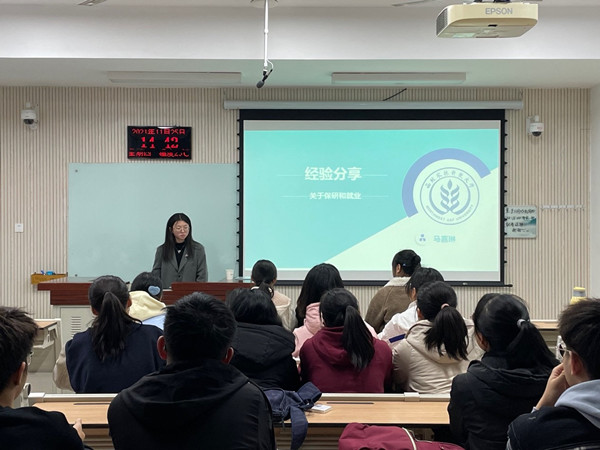 班会开始,由各个学习小组的组长上台,为同学们展示了小组的学习成果。同学们展示的方式和内容十分多样,其中小组长邢朋丽以诗朗诵的方式向同学们展示了青春少年们坚定理想信念的决心。随后,2018届土地资源管理专业马嘉琳同学为同学们进行了关于保研与就业方面的经验分享。就各类竞赛、科研经历、实习要求,保研政策等方面与同学们展开了交流,结合自己的实际经历来为同学们指点迷津。同学们纷纷举手提问,对感兴趣的方面与学姐展开了讨论。
