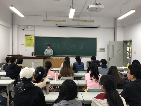 会议伊始,左艺辉同志分别从保研流程、保研材料准备、保研学校选择等方面对保研问题进行讲解。以自身的经验为例,分析影响保研学校选择的内外部诸多因素,指出在申请过程中同专业学生最好错开申请项目、避免内耗。谢艳琦同学阐述了英语水平对保研面试的重要性,详细的讲解了部分名校的夏令营笔试面试题型,让大家对各高校夏令营活动有一个直观的了解。谢丽琴同志强调要对自己有明确的定位,选择合适的学校,并对九推复试环节的小技巧做了介绍。