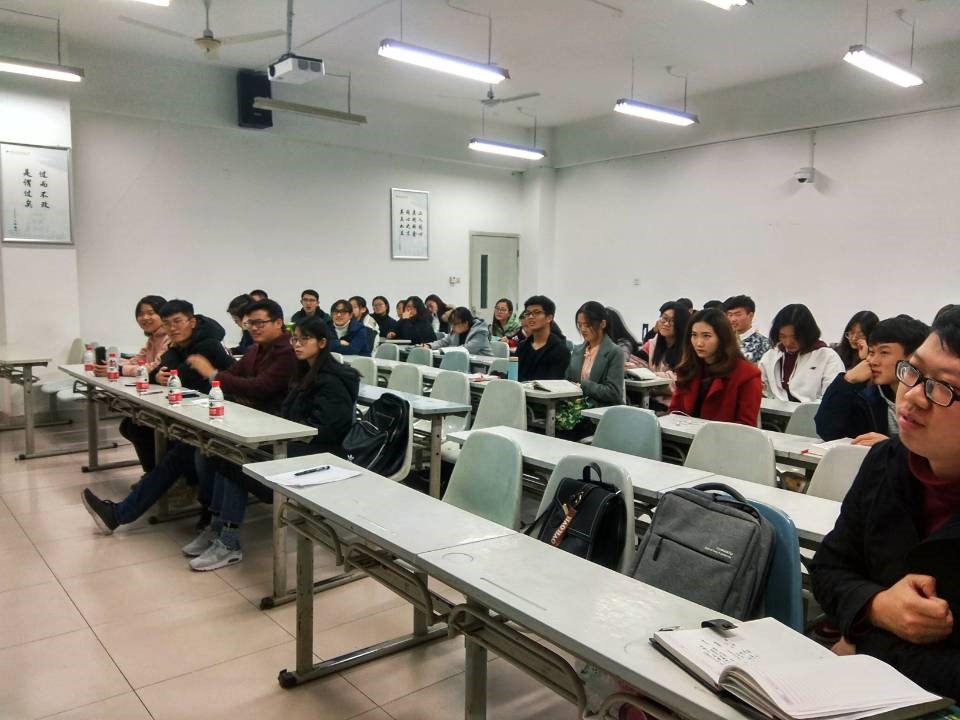 交流会伊始,王正洋学长与同学们交流分享在学习、生活和保研方面的经验。学长就如何提高专业成绩的注意事项、论文查阅和发表方面的心得、如何调整好生活和学习的经验和保研的细则以及申报夏令营等方面做了详细讲解。接下来是钱峥学姐分享交流,她告诉我们应当把进入国贸专业转为我们的优势,提醒我们应当尽早为以后做好规划,相信只要努力,“一切都是最好的安排”。接着是苏金平学长分享交流,学长结合了自己大二大三的生活,和同学们交流了自己在学习方面和生活方面的心得体会,特别强调身体素质的重要性。接着王立成学长分享了其取得全国数学竞赛奖和数学建模奖的经验和注意事项。最后是常丽颖学姐,学姐说:“学习不要急,要有自己的节奏,慢慢去提高,把压力控制在一个度,调节好放松和学习时间,充实使人快乐,反思自己做的每件事的意义。”学姐的话引起大家强烈共鸣。五位学长学姐的交流分享帮助同学们解决了困扰在学习生活上的难题,同时为同学们规划大学生活提了很多受用的建议。