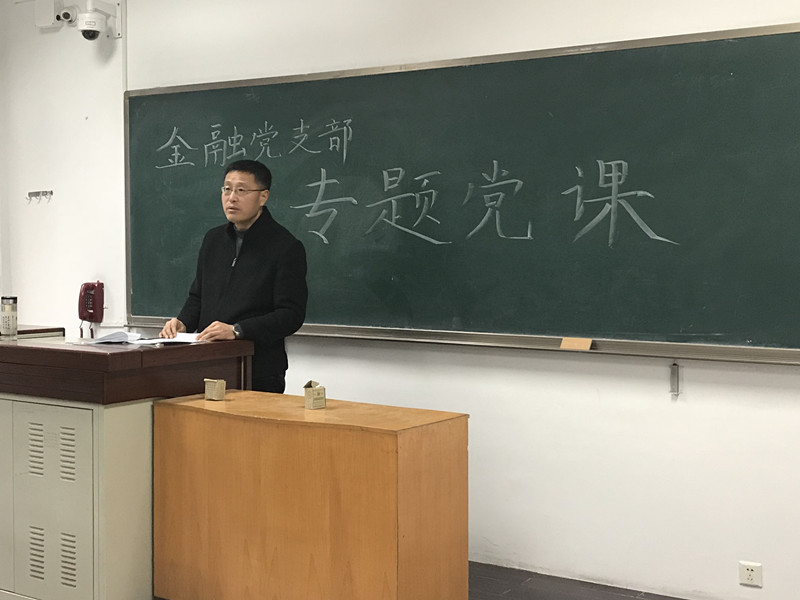 11月28日,金融党支部在S1209开展以“改革开放四十载  凝心聚力再出发”为主题的专题党课。支部全体党员、预备党员、积极分子参加党课。本次课程由学院党委委员吕德宏主讲,支部书记梁润雅同志主持。